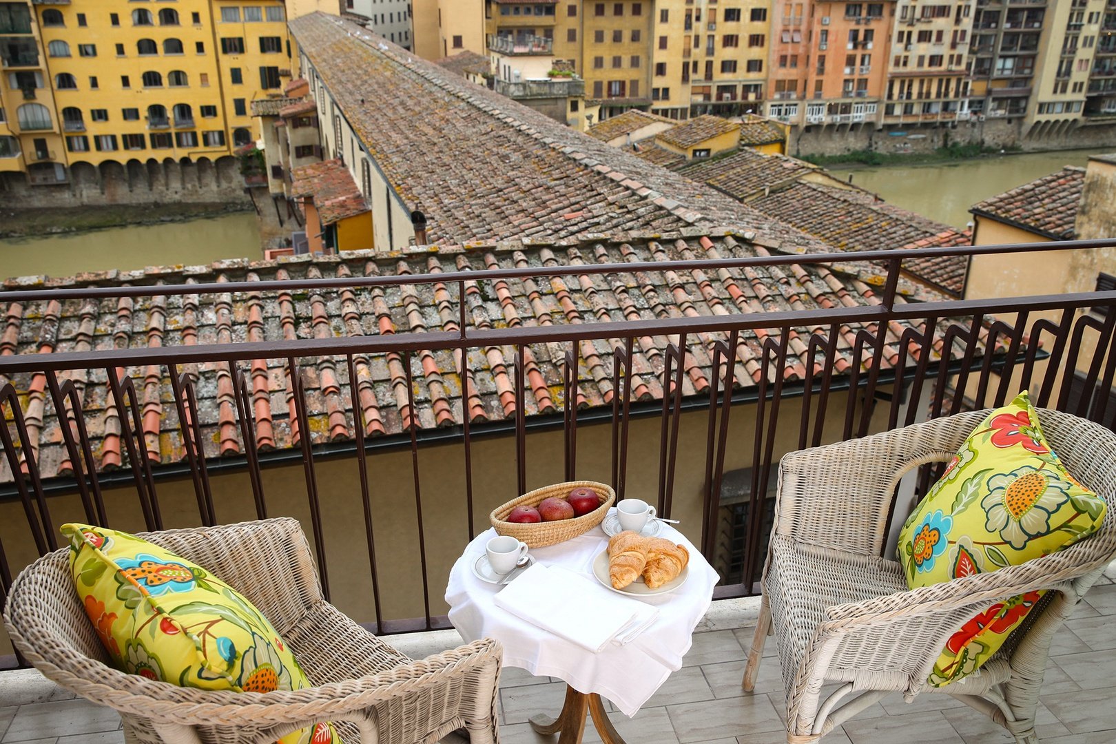 Relax on the beautiful balcony of the Concerto apartment near the Ponte Vecchio.