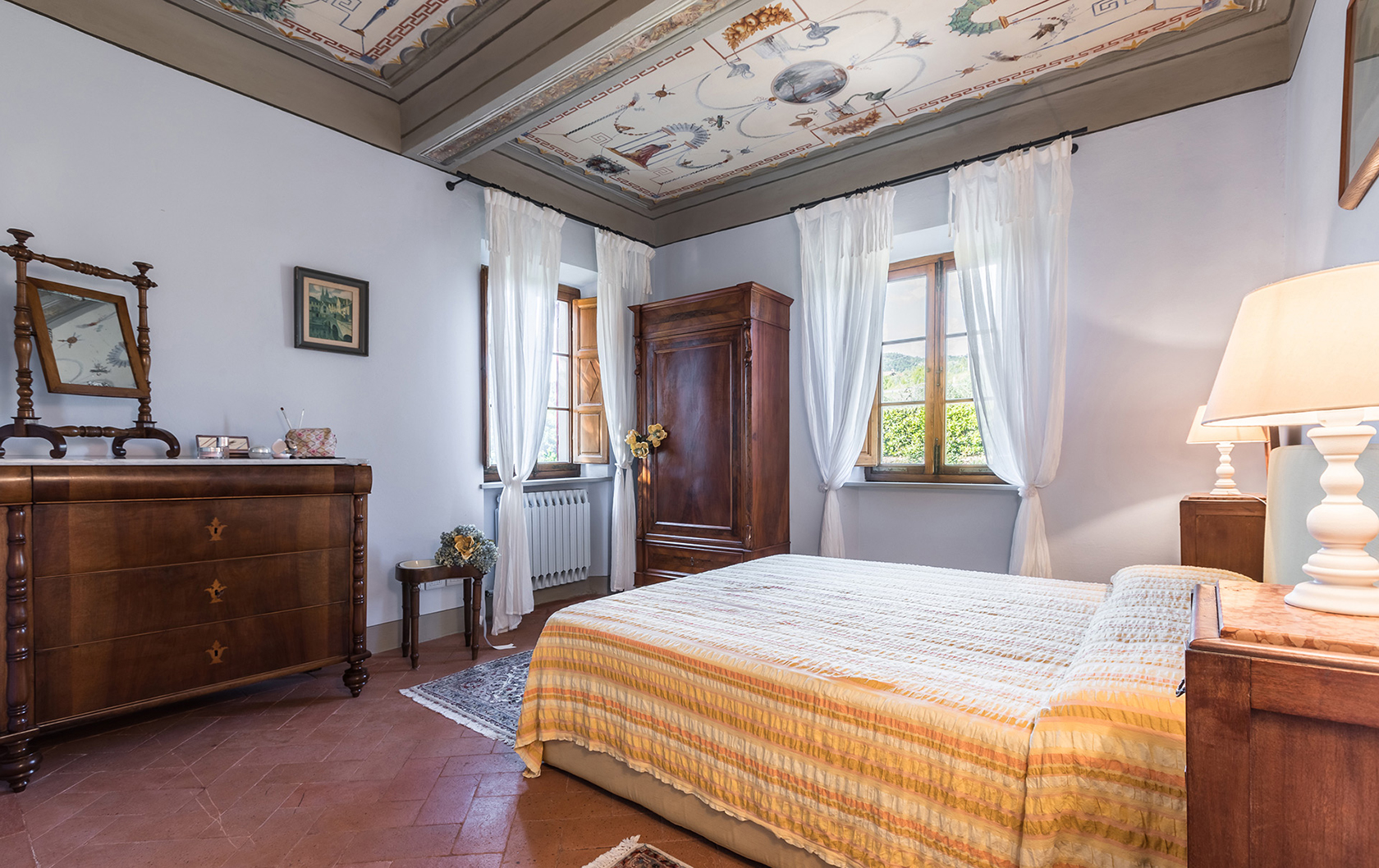 Frescoed ceiling at the historic Panorama Villa