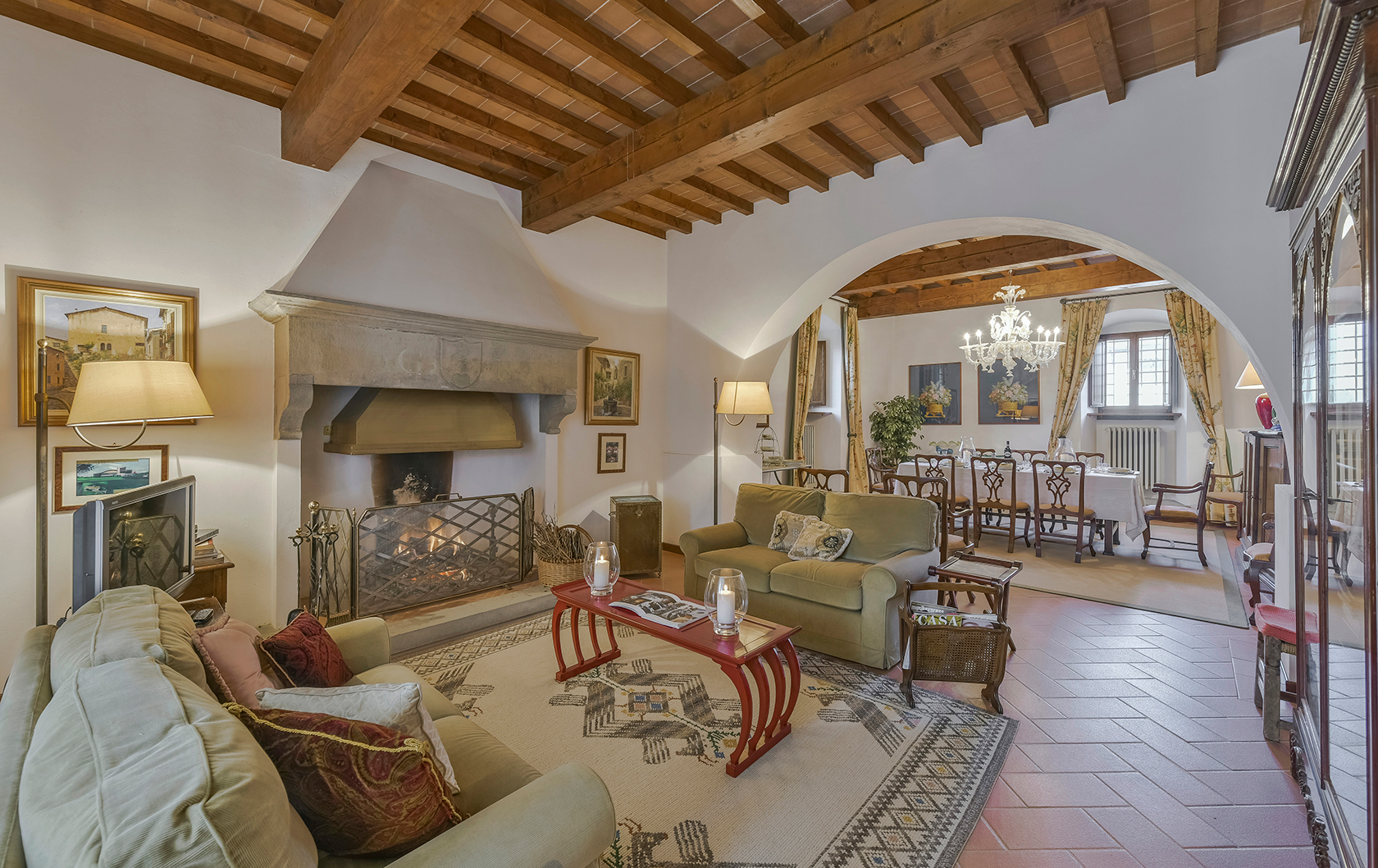 Also on the Vecchietto Estate, the Tucano Villa and Cottage is perfect for intimate groups of up to 8 guests in the main house and 3 more in the cottage on the property. The sprawling loggia is perfect for alfresco lunches and the traditional Tuscan style living room comes complete with a working fireplace for crisp autumn evenings, and guests can avail themselves of all of the amenities that the estate offers. Along with its location near the best shopping that Italy offers, the Tucano Villa is close to the famous towns of Greve in Chianti and Gaiole in Chianti, which live up to their names by hosting some of the best wineries and producers in all of Italy. Make a day out of visits to both towns, as one naturally leads to the other, and enjoy the market squares that fill up with organic vegetables and foods from the area.  If you’re in the area in October you may just catch the fabulous Eroica, a cycling event that began in Gaiole in Chianti and returns there every autumn. Cheer them on from the sidelines with a glass of Chianti Classico in hand!