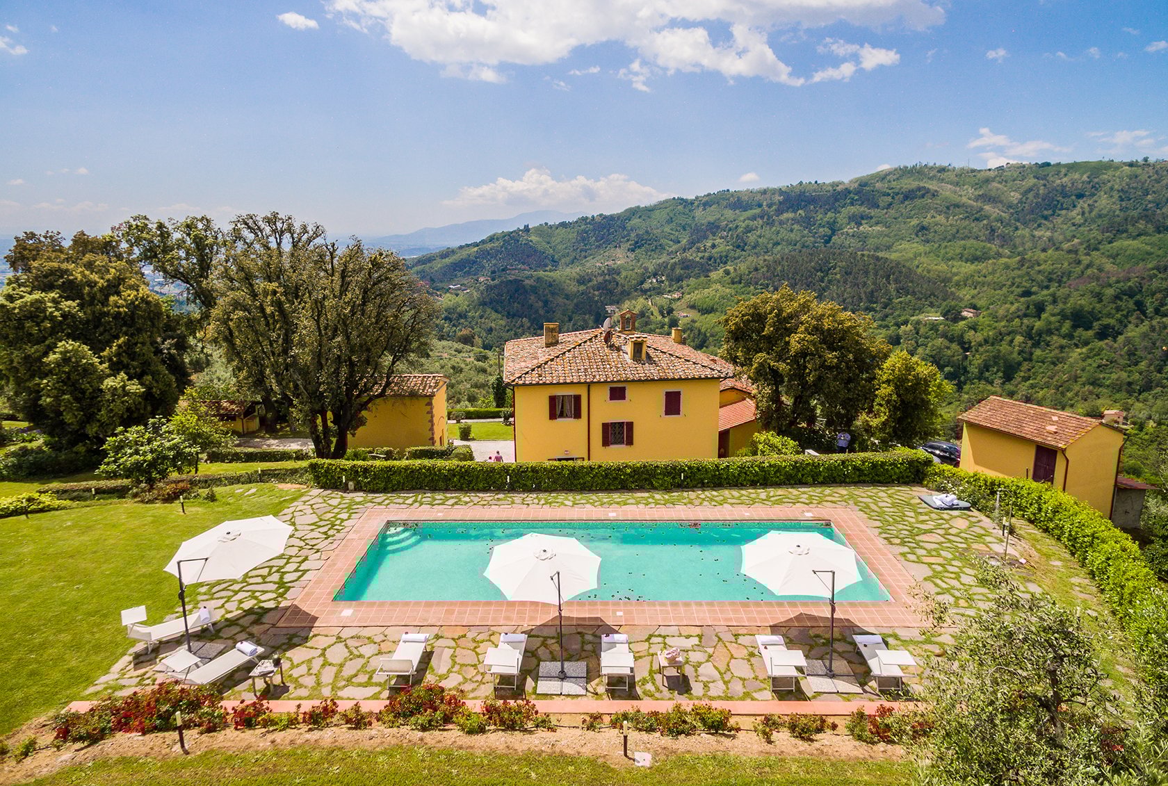 Nestled above the enchanting Val di Nievole, the Panorama villa offers a comfortable and serene retreat surrounded by olive groves on a hillside overlooking Montecatini Terme. This spacious, gated property boasts a large swimming pool, a charming chapel and every room in this bright villa features stunning views and air conditioning, ensuring a comfortable stay. The pool is an especially lovely spot to gather with family or friends during your vacation in Italy.