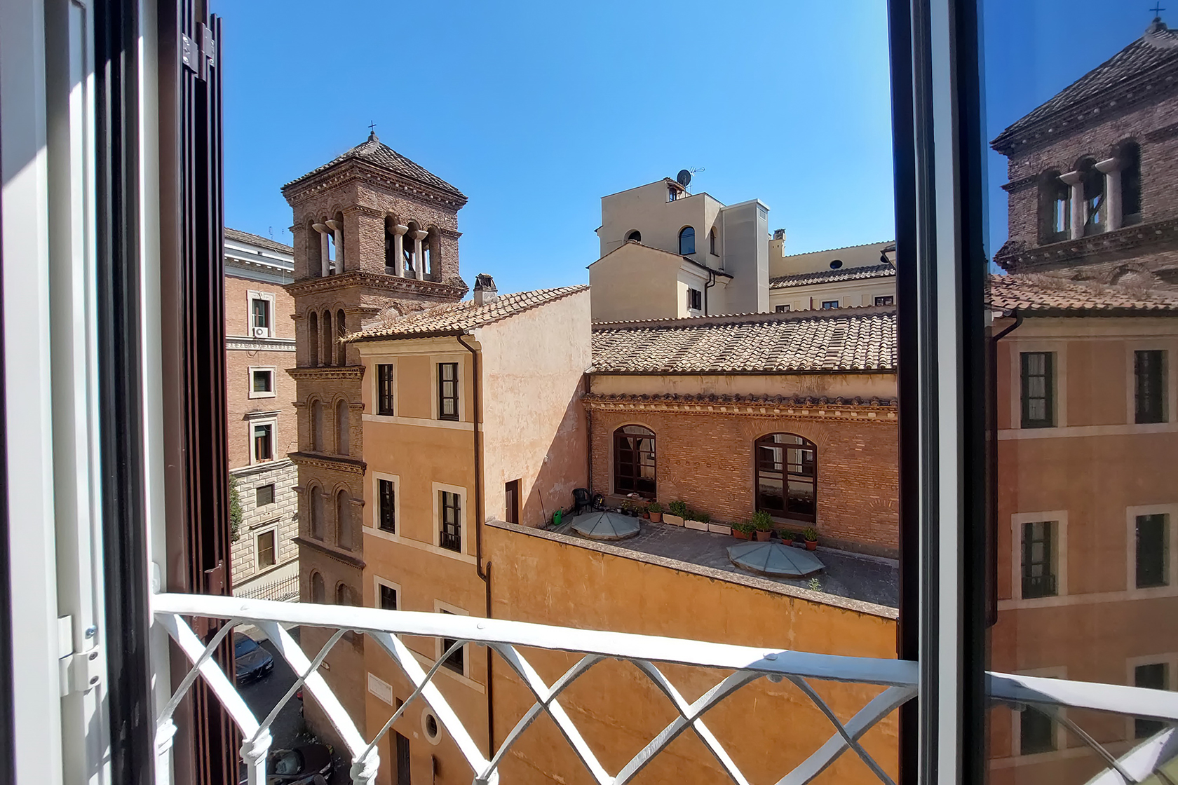 You’ll love staying in this beautiful and quiet neighborhood where you’ll have a view from the bedroom and dining area looking out on an early 12th century Romanesque bell tower made of brick, rounded arches and columns. What a way to wake up in Rome!