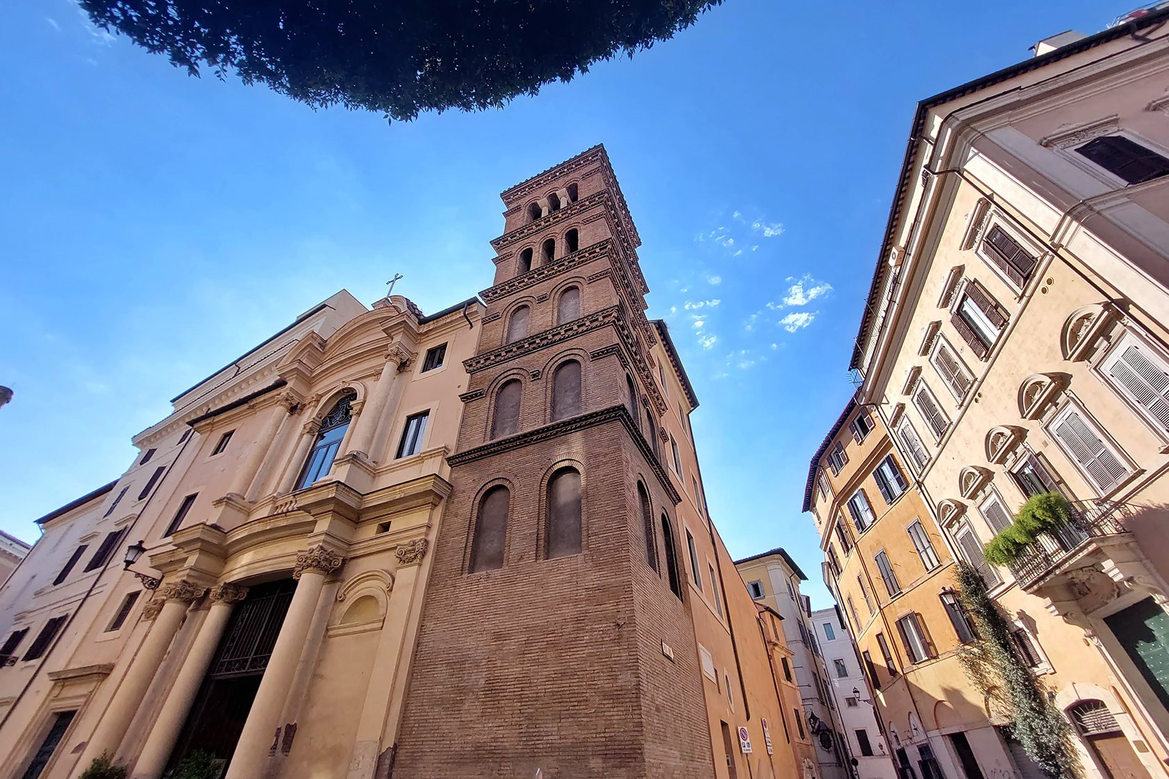 Nestled near Campo de’ Fiori, the Sonata apartment is set in the rione, or district, of Regola, which is built today on layers upon layers of history dating back to ancient times. Known for its medieval layout and Renaissance architecture, this neighborhood has been witness to centuries of transformation. Near the Sonata apartment is the beautiful Church of Santa Maria in Monticelli, which traces its origins to the 12th century. Originally built as a parish church, it underwent renovations in the 16th century to create a harmonious blend of Romanesque and Renaissance styles. The church is renowned for its beautiful frescoes above the altar. The rich blue, rust & gold colors even inspired the decor inside the Sonata apartment!