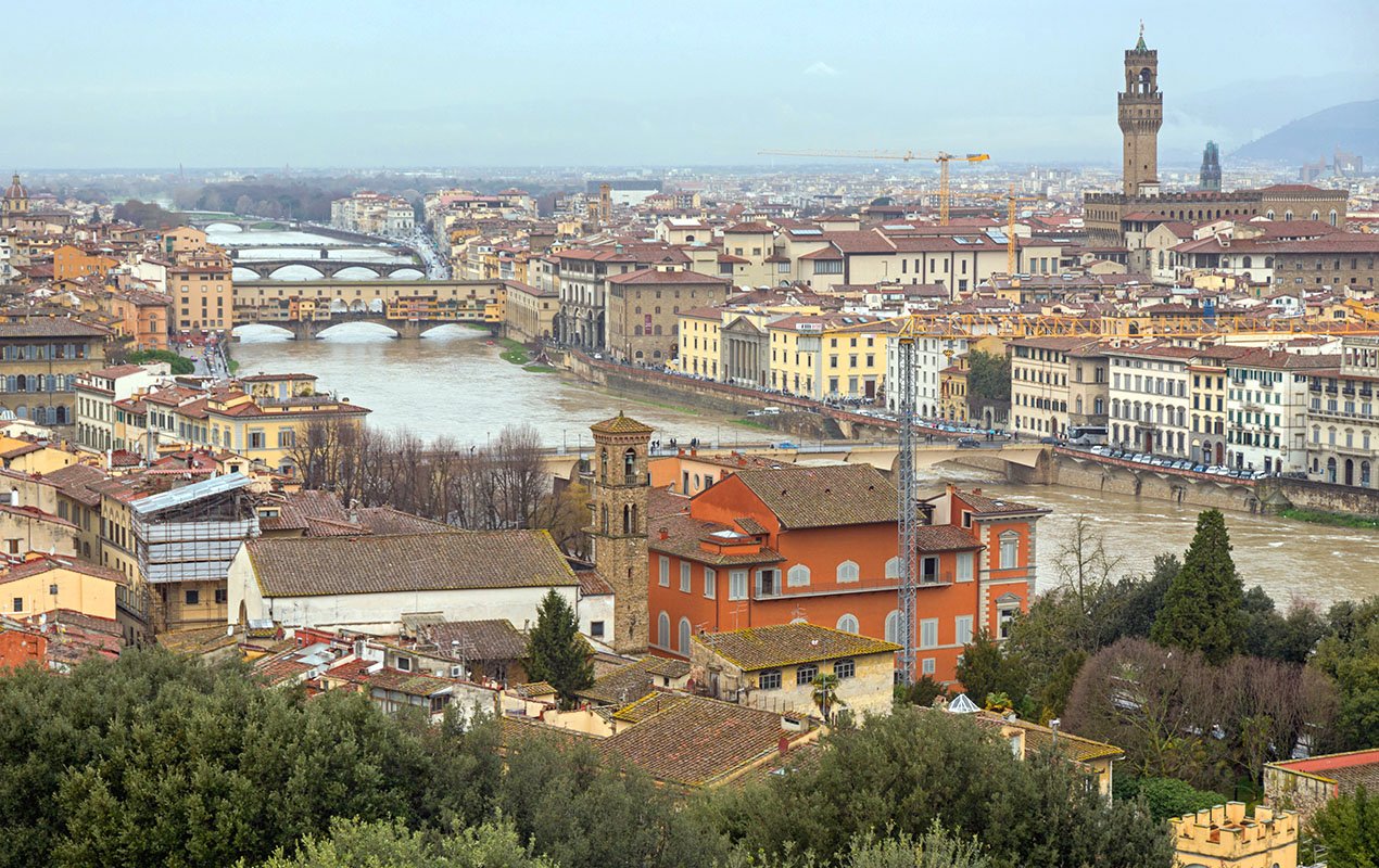 The temperature doesn't typically drop below freezing during the winter in Tuscany and Florence, but it still can feel quite cold thanks to the dampness (especially in Florence, since it's in a valley). If your travels include the hills or mountains, you've got a good chance of seeing snow. Even if you're not leaving Florence, though, the mountains surrounding the city will have beautiful white peaks that make excellent scenery for your photos from Piazzale Michelangelo. Note that crowd sizes swell for the Christmas season.